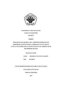 Sujadin, Michelle Natasya (2017) PENGARUH MANAJEMEN LABA, ASIMETRI INFORMASI DAN KEPEMILIKAN INSTITUSIONAL TERHADAP COST OF EQUITY CAPITAL PADA PERUSAHAAN MANUFAKTUR YANG TERDAFTAR DI BEI PERIODE 2013-2015. Skripsi thesis, UNIVERSITAS TARUMANAGARA.