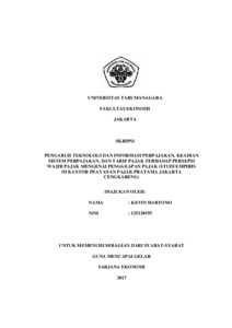 Hartanto, Kevin (2017) PENGARUH TEKNOLOGI DAN INFORMASI PERPAJAKAN, KEADILAN SISTEM PERPAJAKAN, DAN TARIF PAJAK TERHADAP PERSEPSI WAJIB PAJAK MENGENAI PENGGELAPAN PAJAK (TAX EVASION). Skripsi thesis, UNIVERSITAS TARUMANAGARA.