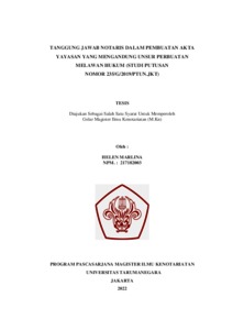 Marlina, Helens (2022) Tanggung Jawab Notaris dalam Pembuatan Akta Yayasan yang Mengandung Unsur Perbuatan Melawan Huku (Studi Putusan Nomor: 235/G/2019/PTUN.JKT. Masters thesis, Universitas Tarumanagara.