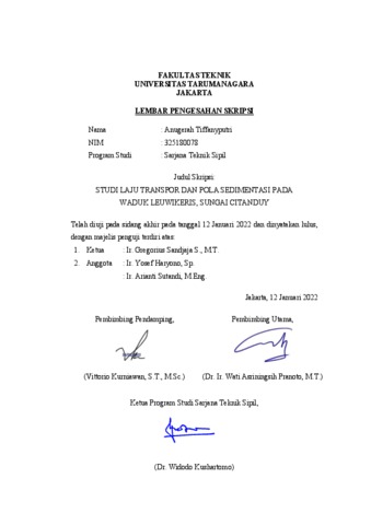Tiffanyputri, Anugerah (2022) Studi laju transpor dan pola sedimentasi pada waduk Leuwikeris, sungai Citanduy. Skripsi thesis, Universitas Tarumanagara.