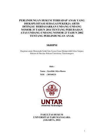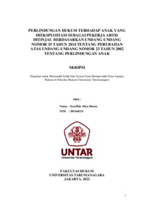 Hasna, Syarifah Aliya (2022) Perlindungan Hukum Terhadap Anak Yang Dieksploitasi Sebagai Pekerja Artis Ditinjau Berdasarkan Undang-Undang Nomor 35 Tahun 2014 tentang Perubahan Atas Undang-Undang Nomor 23 Tahun 2002 tentang Perlindungan Anak. Skripsi thesis, Universitas Tarumanagara.
