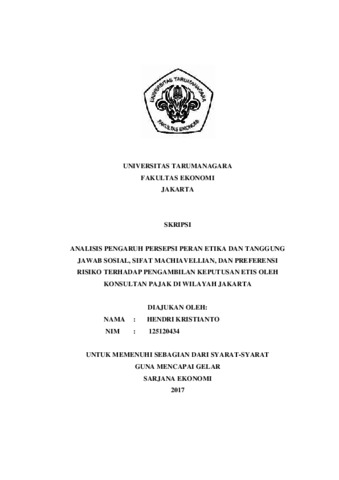 Kristianto, Hendri (2017) ANALISIS PENGARUH PERSEPSI PERAN ETIKA DAN TANGGUNG JAWAB SOSIAL, SIFAT MACHIAVELLIAN, DAN PREFERENSI RISIKO TERHADAP PENGAMBILAN KEPUTUSAN ETIS OLEH KONSULTAN PAJAK DI WILAYAH JAKARTA. Skripsi thesis, UNIVERSITAS TARUMANAGARA.
