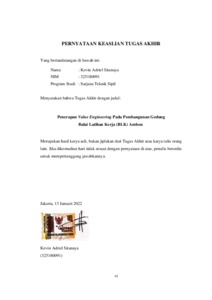 Sitanaya, Kevin Adriel (2022) Penerapan value engineering pada pembangunan gedung balai latihan kerja (blk) Ambon. Skripsi thesis, Universitas Tarumanagara.