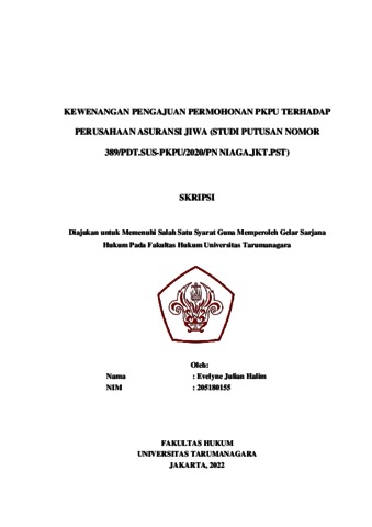 Halim, Evelyne Julian (2022) Kewenangan Pengajuan Permohonan PKPU terhadap Perusahaan Asuransi Jiwa (Studi Putusan Nomor 389/Pdt.Sus-PKPU/2020/PN Niaga.Jkt.Pst.). Skripsi thesis, Universitas Tarumanagara.