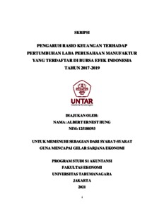 HUNG, ALBERT ERNEST (2021) PENGARUH RASIO KEUANGAN TERHADAP PERTUMBUHAN LABA PERUSAHAAN MANUFAKTUR YANG TERDAFTAR DI BURSA EFEK INDONESIA TAHUN 2017-2019. Diploma thesis, Universitas Tarumanagara.