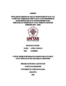 AMALIA, ANISA (2021) PENGARUH CORPORATE SOCIAL RESPONSIBILITY DAN TAX AVOIDANCE TERHADAP FIRM VALUE YANG DIMODERASI OLEH PROFITABILITAS (STUDI EMPIRIS PADA PERUSAHAAN PERBANKAN YANG TERDAFTAR DI BEI PERIODE 2018 – 2020). Skripsi thesis, Universitas Tarumanagara.