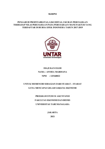 MARDIANA, ANNISA (2021) PENGARUH PROFITABILITAS, LIKUIDITAS, UKURAN PERUSAHAAN TERHADAP NILAI PERUSAHAAN PADA PERUSAHAAN MANUFAKTUR YANG TERDAFTAR DI BURSA EFEK INDONESIA TAHUN 2017-2019. Skripsi thesis, Universitas Tarumanagara.