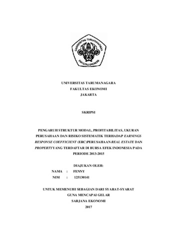 Fenny, Fenny (2017) PENGARUH STRUKTUR MODAL, PROFITABILITAS, UKURAN PERUSAHAAN DAN RISIKO SISTEMATIK TERHADAP EARNINGS RESPONSE COEFFICIENT(ERC) PADA PERUSAHAAN REAL ESTATE DAN PROPERTY PERIODE 2013-2015. Skripsi thesis, UNIVERSITAS TARUMANAGARA.