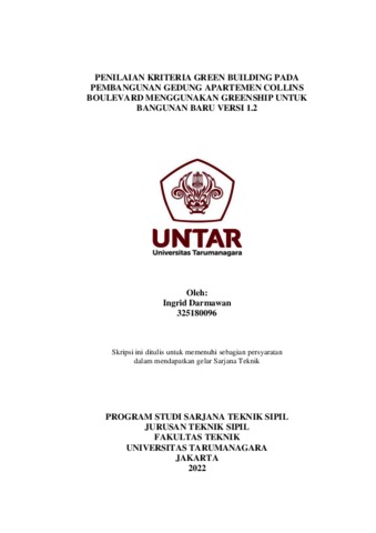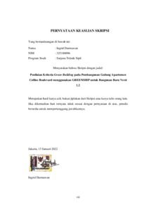 Darmawan, Ingrid (2022) Penilaian kriteria green building pada pembangunan gedung apartemen Collins Boulevard menggunakan greenship untuk bangunan baru versi 1.2. Skripsi thesis, Universitas Tarumanagara.