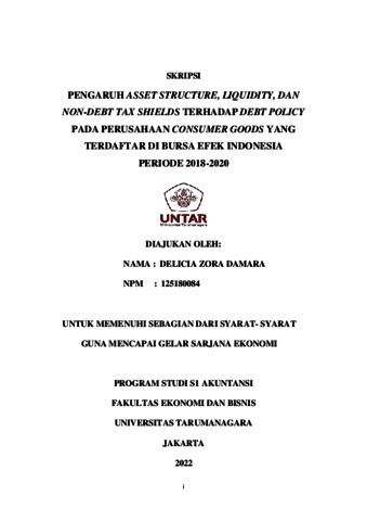 DAMARA, DELICIA ZORA (2021) PENGARUH ASSET STRUCTURE, LIQUIDITY, DAN NON-DEBT TAX SHIELDS TERHADAP DEBT POLICY PADA PERUSAHAAN CONSUMER GOODS YANG TERDAFTAR DI BURSA EFEK INDONESIA PERIODE 2018-2020. Skripsi thesis, Universitas Tarumanagara.