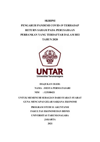 PERMATASARI, DESYA (2021) PENGARUH PANDEMI COVID-19 TERHADAP RETURN SAHAM PADA PERUSAHAAN PERBANKAN YANG TERDAFTAR DALAM BEI TAHUN 2020. Skripsi thesis, Universitas Tarumanagara.