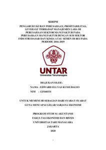 KUSSUBAGIO, EDWARD ELLYAS (2021) PENGARUH UKURAN PERUSAHAAN, PROFITABILITAS, LEVERAGE TERHADAP MANAJEMEN LABA DI PERUSAHAAN SEKTOR MANUFAKTUR PADA PERUSAHAAN MANUFAKTUR DENGAN SUB SEKTOR INDUSTRI DASAR DAN KIMIA ATAU SEMEN DI BEI PADA PERIODE 2016-2019. Skripsi thesis, Universitas Tarumanagara.