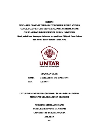 PRATIWI, ELIZABETH INGE (2021) PENGARUH COVID-19 TERHADAP TRANSMISI RISIKO ANTARA GOOGLING INVESTOR’S SENTIMENT, PASAR SAHAM, PASAR OBLIGASI DAN INDEKS SEKTOR SAHAM INDONESIA (Studi pada Pasar Keuangan Indonesia berupa Pasar Obligasi, Pasar Saham dan Indeks Sektor Saham Tahun 2020). Skripsi thesis, Universitas Tarumanagara.