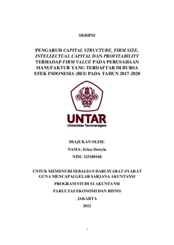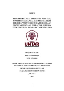 Dessyla, Erica (2021) PENGARUH CAPITAL STRUCTURE, FIRM SIZE, INTELLECTUAL CAPITAL DAN PROFITABILITY TERHADAP FIRM VALUE PADA PERUSAHAAN MANUFAKTUR YANG TERDAFTAR DI BURSA EFEK INDONESIA (BEI) PADA TAHUN 2017-2020. Skripsi thesis, Universitas Tarumanagara.