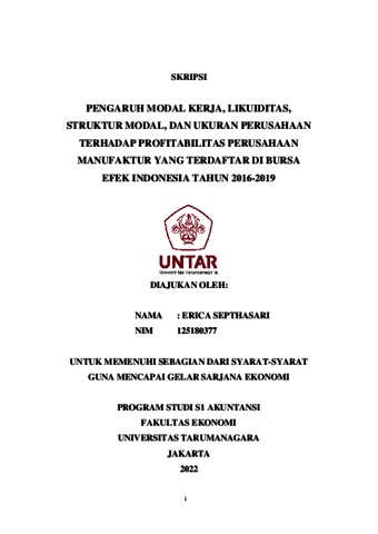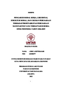 SEPTHASARI, ERICA (2021) PENGARUH INVENTORY TURNOVER, LIKUIDITAS, STRUKTUR MODAL, DAN UKURAN PERUSAHAAN TERHADAP PROFITABILITAS PERUSAHAAN MANUFAKTUR YANG TERDAFTAR DI BURSA EFEK INDONESIA TAHUN 2016-2019. Skripsi thesis, Universitas Tarumanagara.