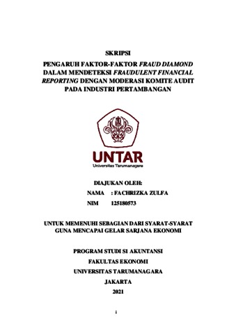ZULFA, FACHRIZKA (2021) PENGARUH FAKTOR-FAKTOR FRAUD DIAMOND DALAM MENDETEKSI FRAUDULENT FINANCIAL REPORTING DENGAN MODERASI KOMITE AUDIT PADA INDUSTRI PERTAMBANGAN. Skripsi thesis, Universitas Tarumanagara.