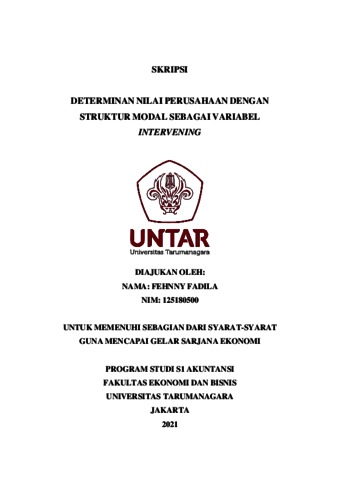 FADILA, FEHNNY (2021) DETERMINAN NILAI PERUSAHAAN DENGAN STRUKTUR MODAL SEBAGAI VARIABEL INTERVENING. Skripsi thesis, Universitas Tarumanagara.