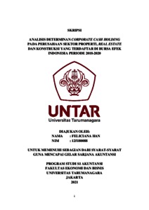HAN, FELICIANA (2021) ANALISIS DETERMINAN CORPORATE CASH HOLDING PADA PERUSAHAAN SEKTOR PROPERTI, REAL ESTATE DAN KONSTRUKSI YANG TERDAFTAR DI BURSA EFEK INDONESIA PERIODE 2018-2020. Skripsi thesis, Universitas Tarumanagara.
