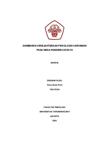 Putri, Vicky Kezia (2022) GAMBARAN KESEJAHTERAAN PSIKOLOGIS KARYAWAN PADA MASA PANDEMI COVID-19. Skripsi thesis, Universitas Tarumanagara.
