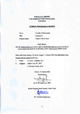Laurie, Cantika Violita (2022) Studi perbandingan perilaku struktur gedung bertingkat yang menggunakan base isolation terhadap fixed base. Skripsi thesis, Universitas Tarumanagara.