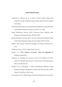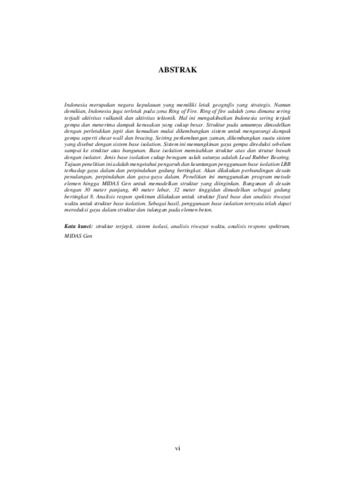 | Uncontrolled Keywords: | struktur terjepit, sistem isolasi, analisis riwayat waktu, analisis respons spektrum, MIDAS Gen |