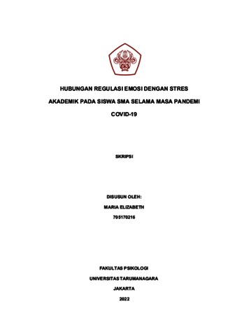 Elizabeth, Maria (2022) HUBUNGAN REGULASI EMOSI DENGAN STRES AKADEMIK PADA SISWA SMA SELAMA MASA PANDEMI COVID-19. Skripsi thesis, Universitas Tarumanagara.