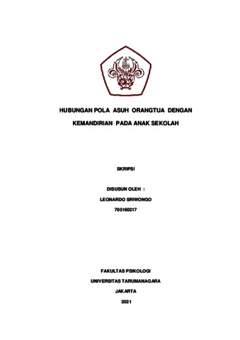 Sriwongo, Leonardo (2022) Hubungan Pola Asuh Orang Tua Dengan Kemandirian Anak Sekola. Skripsi thesis, Universitas Tarumanagara.