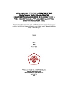 Noni, Noni (2022) META-ANALISIS: EFEKTIVITAS TREATMENT AND EDUCATION OF AUTISTIC AND RELATED COMMUNICATION HANDICAPPED CHILDREN (TEACCH) PADA KEMAMPUAN ADAPTIF ANAK DENGAN AUTISM SPECTRUM DISORDER (ASD). Masters thesis, Universitas Tarumanagara.