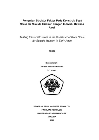 Kesuma, Verisca Marciana (2022) Pengujian Struktur Faktor Pada Konstruk Beck Scale for Suicide Ideation dengan Dewasa Awal. Masters thesis, Universitas Tarumanagara.