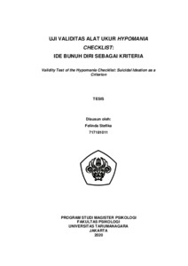 Stefika, Felinda (2022) UJI VALIDITAS ALAT UKUR HYPOMANIA CHECKLIST: IDE BUNUH DIRI SEBAGAI KRITERIA. Masters thesis, Universitas Tarumanagara.