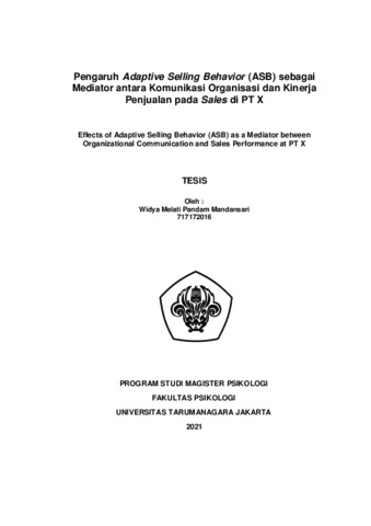 Mandansari, Widya Melati Pandam (2022) Peran Adaptive Selling Behavior (ASB) sebagai Mediator antara Komunikasi Organisasi dengan Kinerja Tenaga Penjualan. Masters thesis, Universitas Tarumanagara.