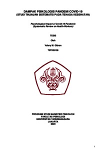 Gibran, Valery M. (2022) DAMPAK PSIKOLOGIS PANDEMI COVID-19 (STUDI TINJAUAN SISTEMATIS PADA TENAGA KESEHATAN). Masters thesis, Universitas Tarumanagara.