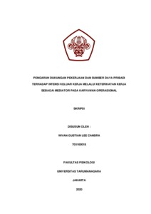 Candra, Wivan Gustian Lee (2022) Pengaruh Dukungan Pekerjaan dan Sumber Daya Pribadi Terhadap Intensi Keluar Kerja Melalui Keterikatan Kerja Sebagai Mediator pada Karyawan Operasional. Skripsi thesis, Universitas Tarumanagara.
