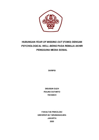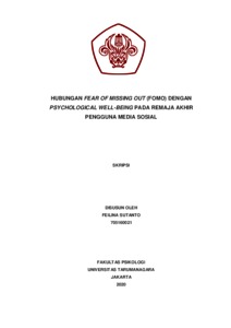 Sutanto, Feilina (2022) Hubungan Fear of Missing Out (FoMO) dengan Psychological Well-Being pada remaja akhir pengguna media sosial. Skripsi thesis, Universitas Tarumanagara.
