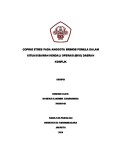 Chairunnisa, Noviera Djasmine (2022) Coping Stres pada Anggota Brimob Pemula dalam Situasi Bawah Kendali Operasi (BKO) Daerah Konflik. Skripsi thesis, Universitas Tarumanagara.