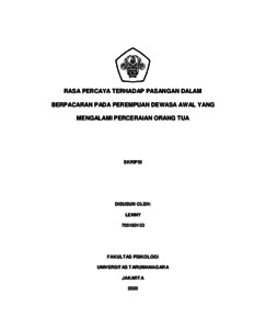 Lenny, Lenny (2022) Rasa Percaya terhadap Pasangan dalam Berpacaran pada Perempuan Dewasa Awal yang Mengalami Perceraian Orang Tua. Skripsi thesis, Universitas Tarumanagara.