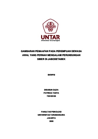 Tanya, Patricia (2022) Gambaran Pemaafan pada Perempuan Dewasa Awal yang Mengalami Perundungan Siber di Jabodetabek. Skripsi thesis, Universitas Tarumanagara.