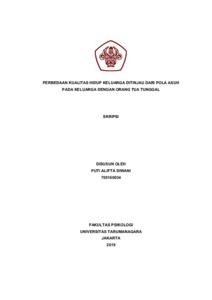 Diwani, Puti Alifta (2022) Perbedaan Kualitas Hidup Keluarga Ditinjau dari Pola Asuh pada Keluarga dengan Orang Tua Tunggal. Skripsi thesis, Universitas Tarumanagara.