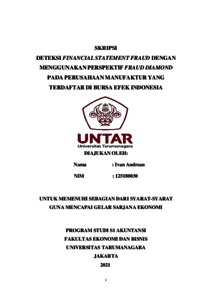 Andrean, Ivan (2021) DETEKSI FINANCIAL STATEMENT FRAUD DENGAN MENGGUNAKAN PERSPEKTIF FRAUD DIAMOND PADA PERUSAHAAN MANUFAKTUR YANG TERDAFTAR DI BURSA EFEK INDONESIA. Skripsi thesis, Universitas Tarumanagara.