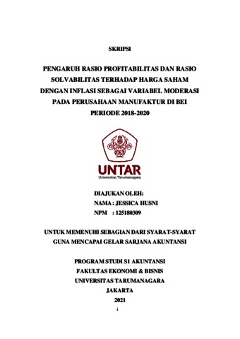HUSNI, JESSICA (2021) PENGARUH RASIO PROFITABILITAS DAN RASIO SOLVABILITAS TERHADAP HARGA SAHAM DENGAN INFLASI SEBAGAI VARIABEL MODERASI PADA PERUSAHAAN MANUFAKTUR DI BEI PERIODE 2018-2020. Skripsi thesis, Universitas Tarumanagara.