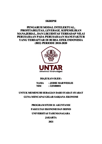 Kata Kunci: Modal Intelektual, Profitabilitas, Leverage, Kepemilikan Manajerial, Likuiditas dan Nilai Perusahaan.