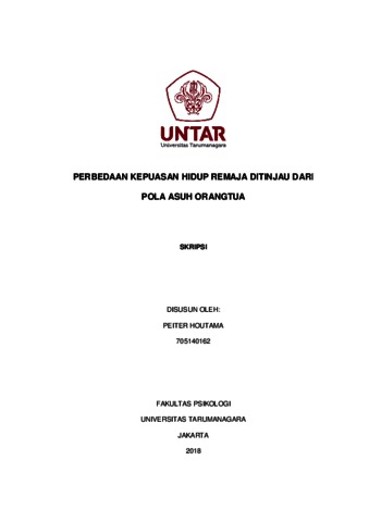 Houtama, Peiter (2022) Perbedaan Kepuasan Hidup Remaja Ditinjau dari Pola Asuh Orangtua. Skripsi thesis, Universitas Tarumanagara.