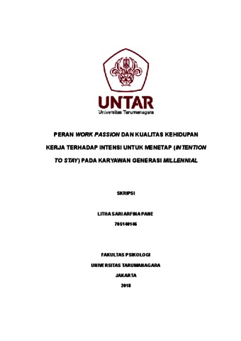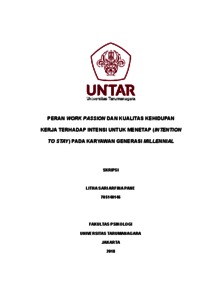 Pane, Litha Sari Arfina (2022) Peran Work Passion dan Kualitas Kehidupan Kerja terhadap Intensi Untuk Menetap Pada Karyawan Generasi Millennial. Skripsi thesis, Universitas Tarumanagara.