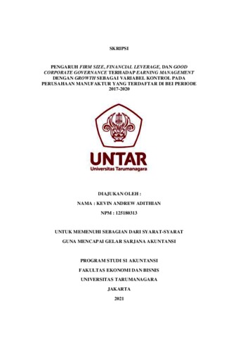 ADITHIAN, KEVIN ANDREW (2021) PENGARUH FIRM SIZE, FINANCIAL LEVERAGE, DAN GOOD CORPORATE GOVERNANCE TERHADAP EARNING MANAGEMENT DENGAN GROWTH SEBAGAI VARIABEL KONTROL PADA PERUSAHAAN MANUFAKTUR YANG TERDAFTAR DI BEI PERIODE 2017-2020. Skripsi thesis, Universitas Tarumanagara.