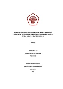 Delfiani, Rebecca Listian (2022) Pengaruh Musik Instrumental Kontemporer Terhadap Peningkatan Memori Jangka Pendek pada Siswa Kelas XI SMA X. Skripsi thesis, Universitas Tarumanagara.