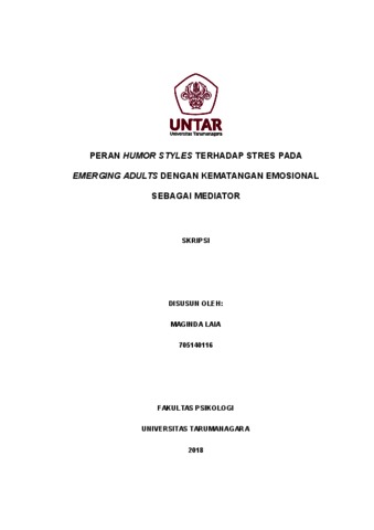 Laia, Maginda (2022) Peran Humor Styles terhadap Stres pada Emerging Adults dengan Kematangan Emosional sebagai Mediator. Skripsi thesis, Universitas Tarumanagara.