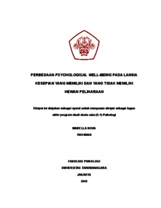 Nova, Mabella (2022) Perbedaan Psychological Well-Being pada Manula Kesepian yang Memiliki dan Tidak Memiliki Hewan Peliharaan. Skripsi thesis, Universitas Tarumanagara.