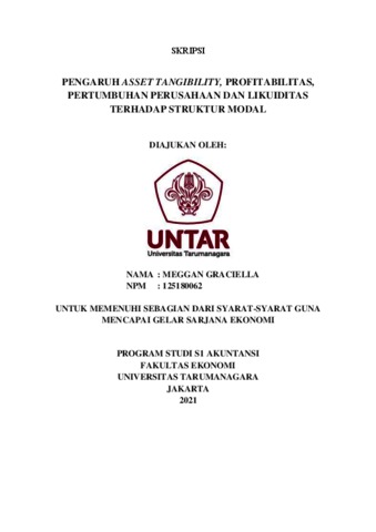 Kata Kunci: Asset Tangibility, Profitabilitas, Pertumbuhan Perusahaan, Likuiditas dan struktur modal