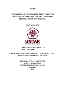 GRACIELLA, MEGGAN (2021) PENGARUH ASSET TANGIBILITY, PROFITABILITAS, PERTUMBUHAN PERUSAHAAN DAN LIKUIDITAS TERHADAP STRUKTUR MODAL. Skripsi thesis, Universitas Tarumanagara.
