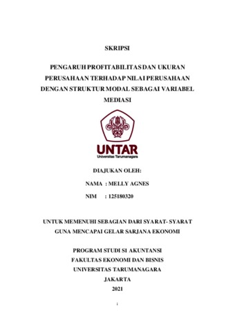 AGNES, MELLY (2021) PENGARUH PROFITABILITAS DAN UKURAN PERUSAHAAN TERHADAP NILAI PERUSAHAAN DENGAN STRUKTUR MODAL SEBAGAI VARIABEL MEDIASI. Skripsi thesis, Universitas Tarumanagara.
